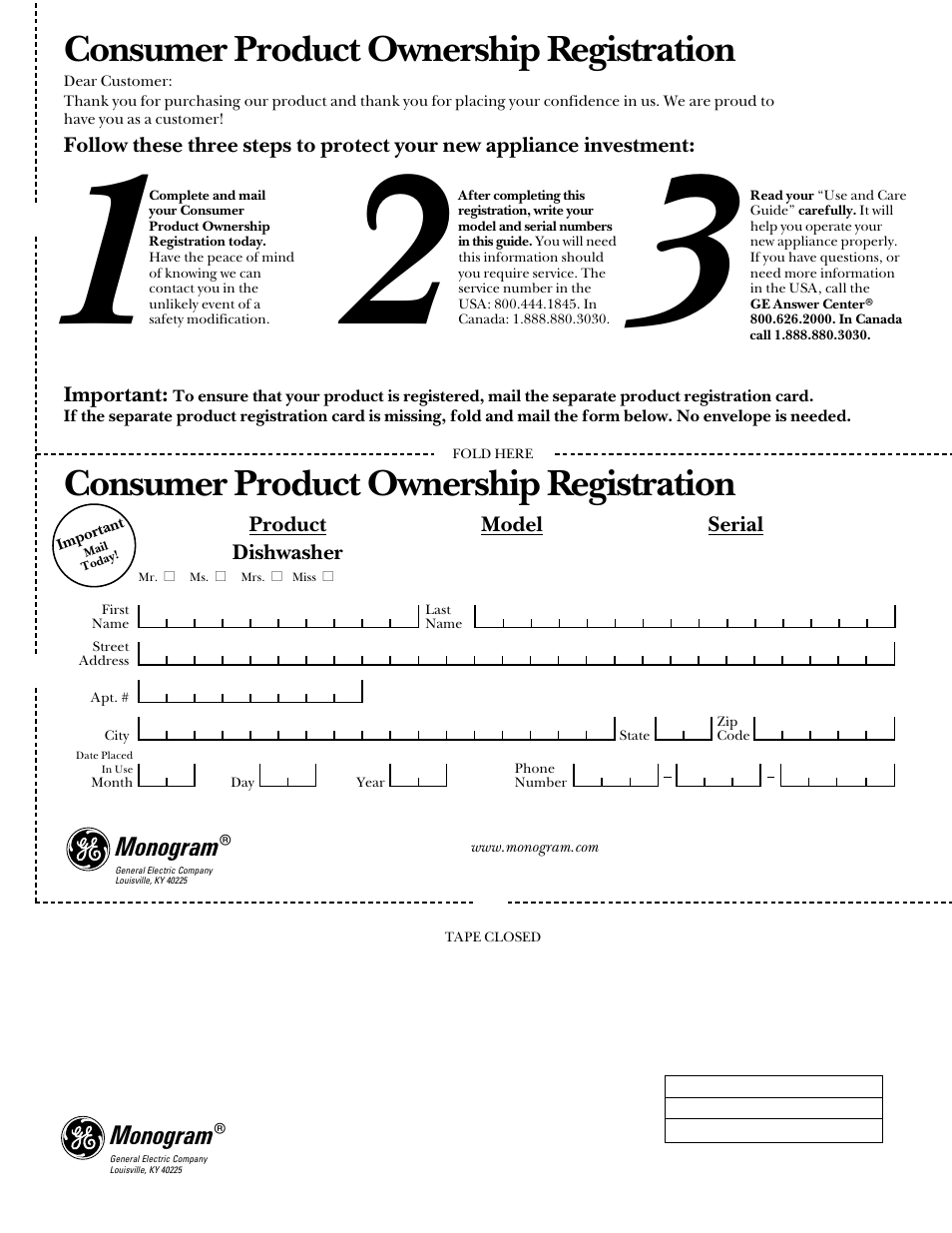 Consumer Product Ownership Registration Ge Monogram Zbd5600 Manuel