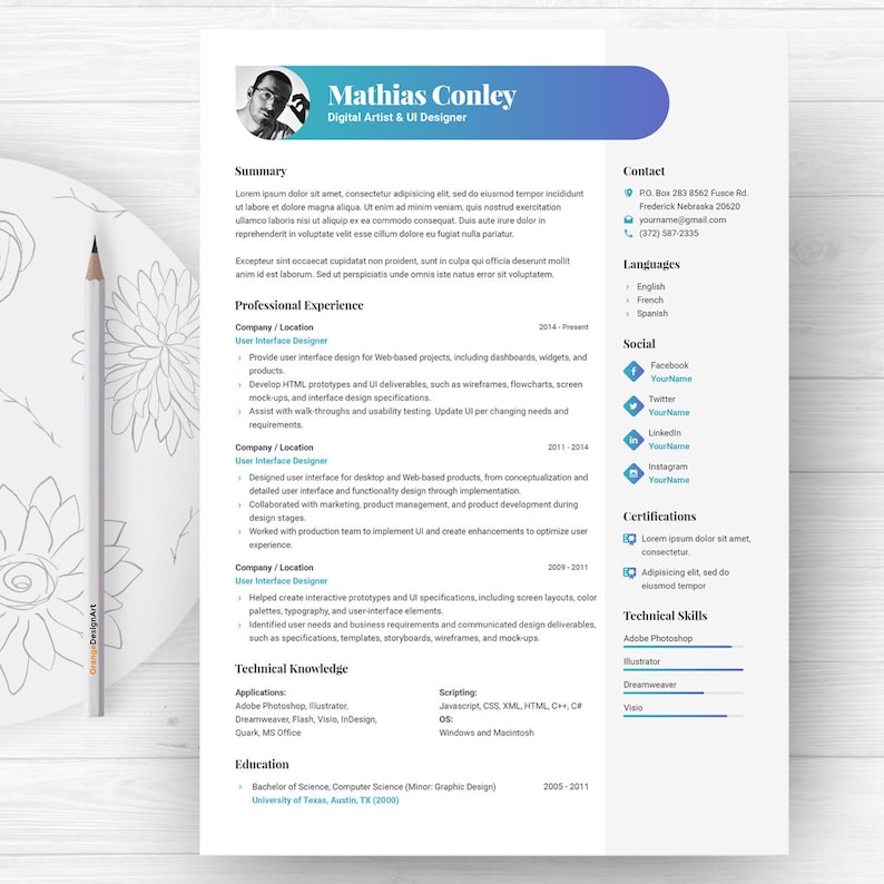 Graphic Resume Template With Photo Cv Template Cover Letter Digital Artist Cv Professional And Creative Resume Ms Word Resume