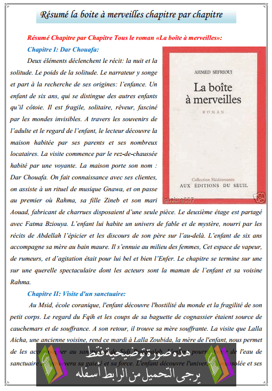 Thus this article درس Résumé la boite à merveilles chapitre par chapitre اللغة الفرنسية الأولى باكالوريا البستان